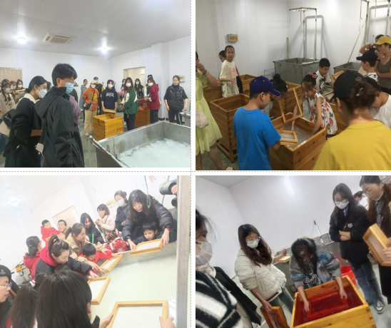 2.顏色紙撈紙體驗間,游客根據(jù)自己喜好自行選擇生肖、卡通 文字等圖案的個性化紙簾,在師傅的帶領(lǐng)下,親自動手體驗徽州皮紙的撈制,然后由師傅快速烘干,帶回家留作紀(jì)念。