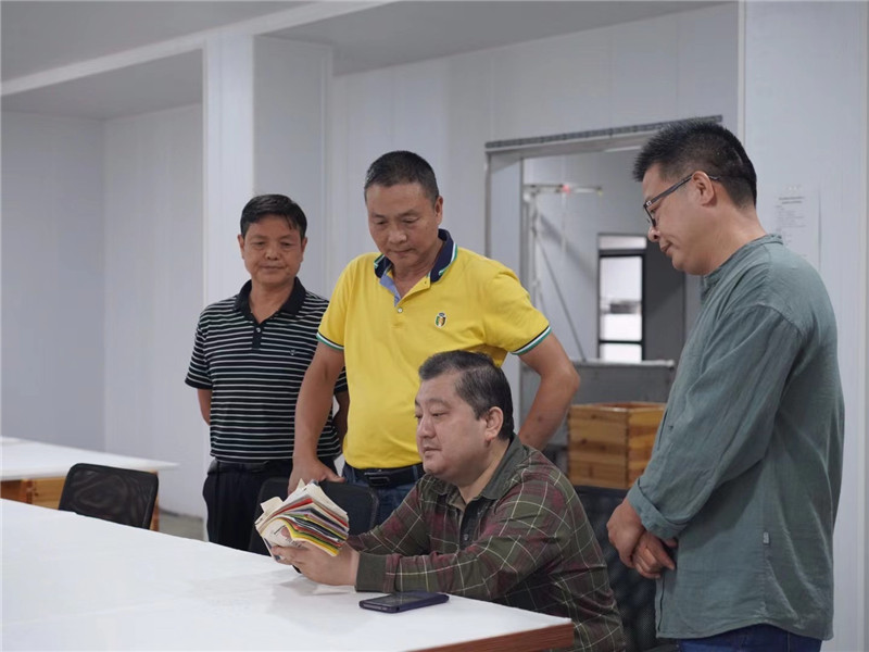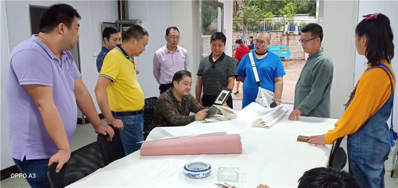 休寧縣書法協(xié)會主席胡社文陪同安徽省青年書法家協(xié)會主席王亞洲等藝術家到公司指導