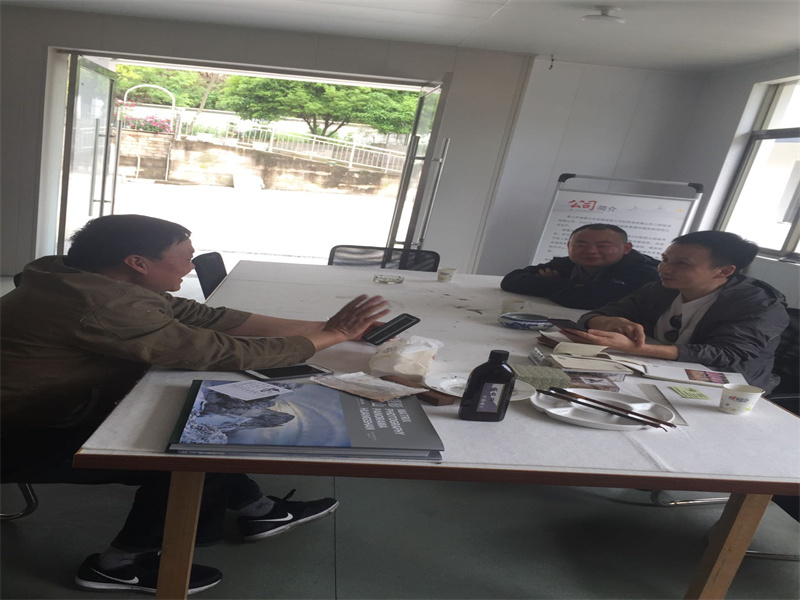 2021.4.13著名書法家劉老師、徽墨大師來公司參觀學習,了解楮皮紙技藝,如何做出好楮皮紙,挑選好紙。